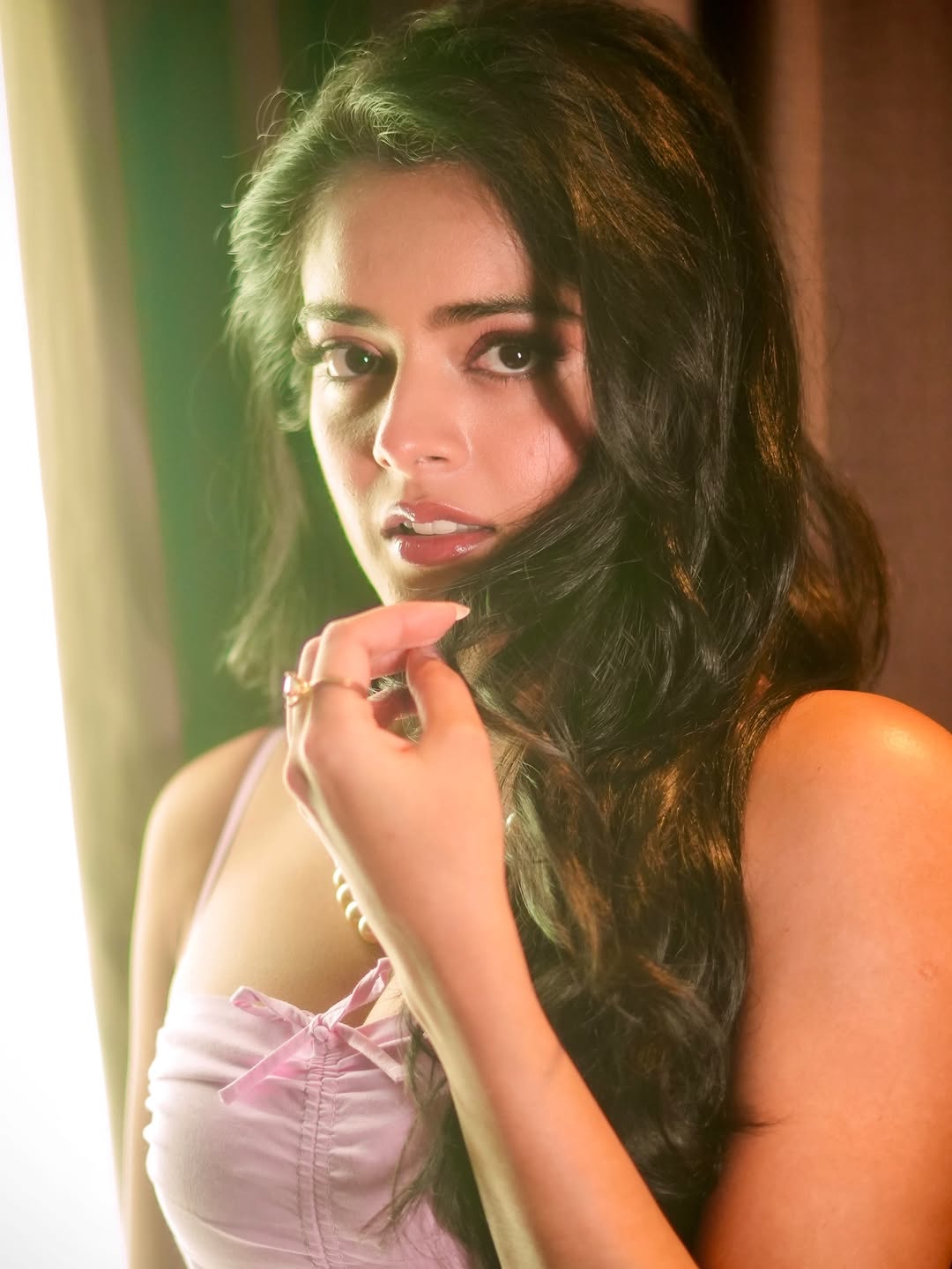 Riddhi Kumar looks effortlessly graceful in a pink dress, radiating charm and youthful elegance. The soft pink hue beautifully complements her complexion, giving her a fresh and luminous appearance. Whether the dress features delicate embroidery, flowing chiffon layers, or a sleek satin finish, she carries it with poise and confidence.