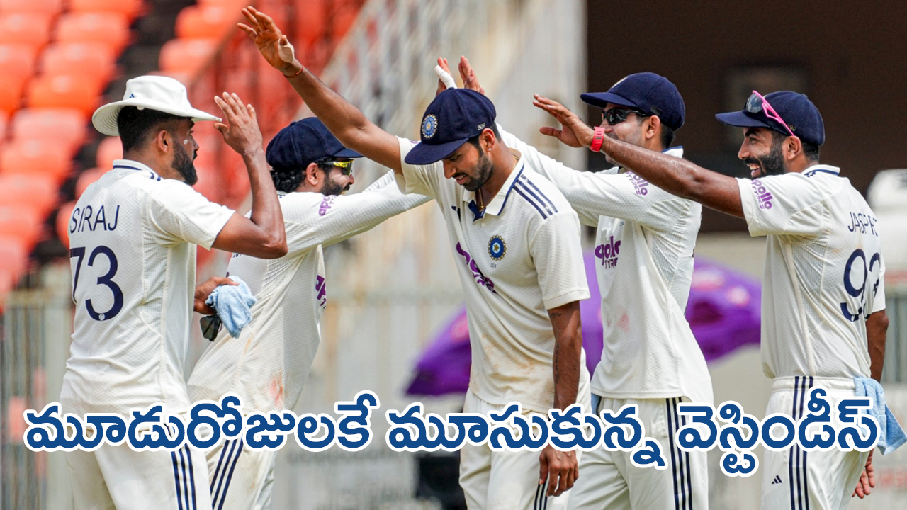 అహ్మదాబాద్లో జరిగిన మొదటి టెస్ట్ మ్యాచ్లో వెస్టిండీస్పై భారత్ మూడు రోజుల్లోనే ఘన విజయం సాధించింది. జడేజా 104 నాటౌట్, 4 వికెట్లు — సిరాజ్ 7 వికెట్లు సాధించి వెస్టిండీస్ జట్టును ఇన్నింగ్స్ తేడాతో చిత్తు చేశారు.