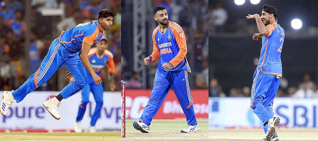 టాస్ గెలిచి బంగ్లాకు బ్యాటింగ్ అప్పగించిన భారత్, సరైన నిర్ణయమే తీసుకుంది. ఆరంభంలోనే నిప్పులు కురిపించిన అర్షదీప్ సింగ్ టపాటపా రెండు వికెట్లు నేలకూల్చాడు. ఆర్షదీప్(Arshdeep Singh) దెబ్బకు ఓపెనర్లిద్దరూ 14 పరుగులకే డగౌట్కు చేరారు. ఆ తర్వాత కుదుటపడుతున్నట్టనిపించిన కెప్టెన్ శాంటోను వాషింగ్టన్ సుందర్ అద్భుతమైన రిటర్న్ క్యాచ్ ద్వారా అవుట్ చేయగా, ప్రమాదకర బ్యాటర్ మహమ్మదుల్లాను ఆరంగేట్ర బౌలర్ మయాంక్ యాదవ్ ఒక్క పరుగుకే ఇంటికి పంపాడు. మిడిలార్డర్ను స్పిన్నర్ వరుణ్ చక్రవర్తి(Varun Chakravarthy) మూడు వికెట్లు తీసి కుప్పకూల్చగా, మెహదీ హసన్ ఒక్కడే కాస్త పోరాడాడు. మిగతావారిలా వచ్చి అలా వెళ్లారు. భారత బౌలర్లలో అర్షదీప్, వరుణ్ చెరో మూడు వికెట్లు తీసుకోగా, మయాంక్, హార్థిక్, సుందర్ తలా ఒక వికెట్ తీసుకున్నారు.