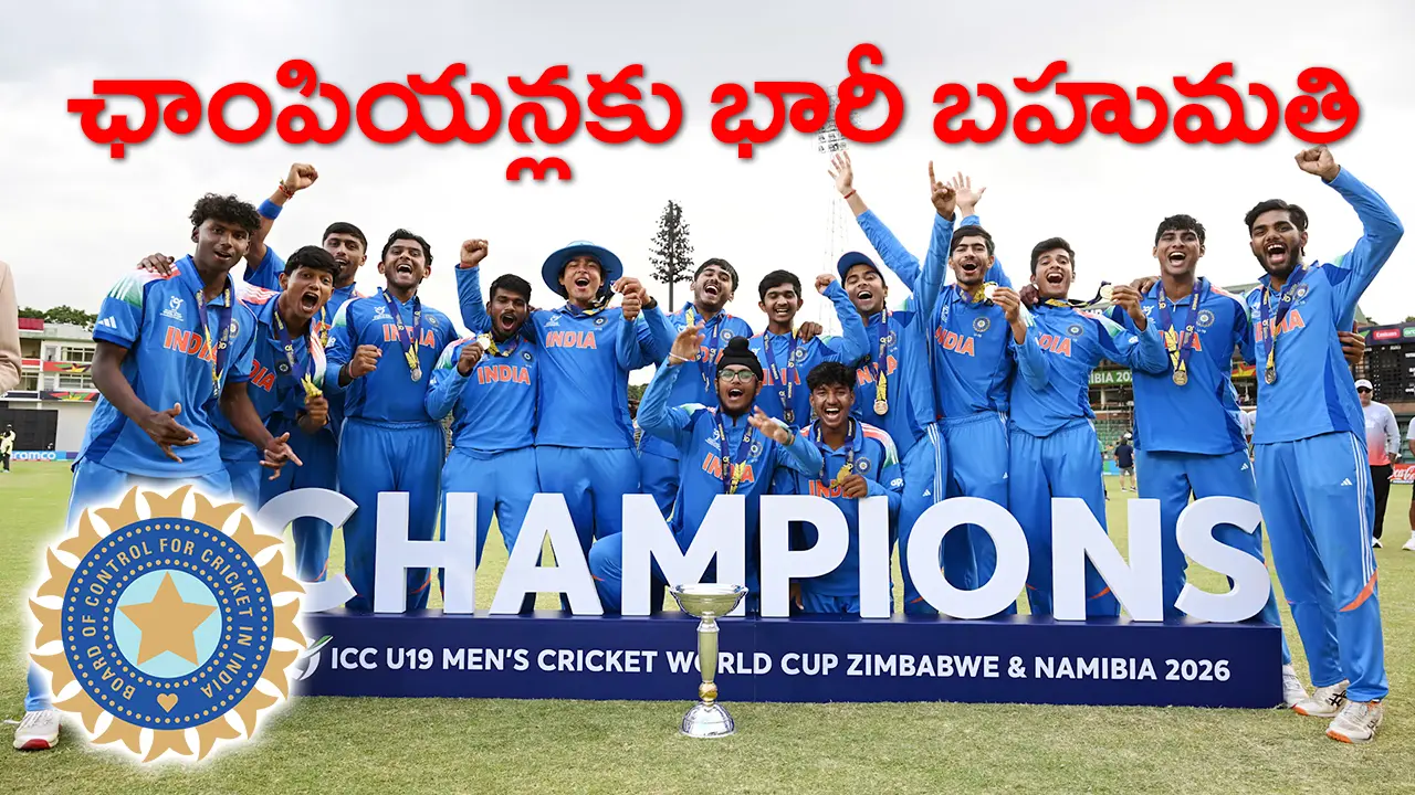 2026 అండర్-19 ప్రపంచకప్లో భారత్ విజేతగా నిలవడంతో బీసీసీఐ రూ.7.5 కోట్ల నగదు బహుమతిని ప్రకటించింది. హరారే ఫైనల్లో ఇంగ్లండ్పై ఘనవిజయం, వైభవ్ సూర్యవంశీ 175 పరుగుల ఇన్నింగ్స్తో యువజట్టు చరిత్ర సృష్టించింది.