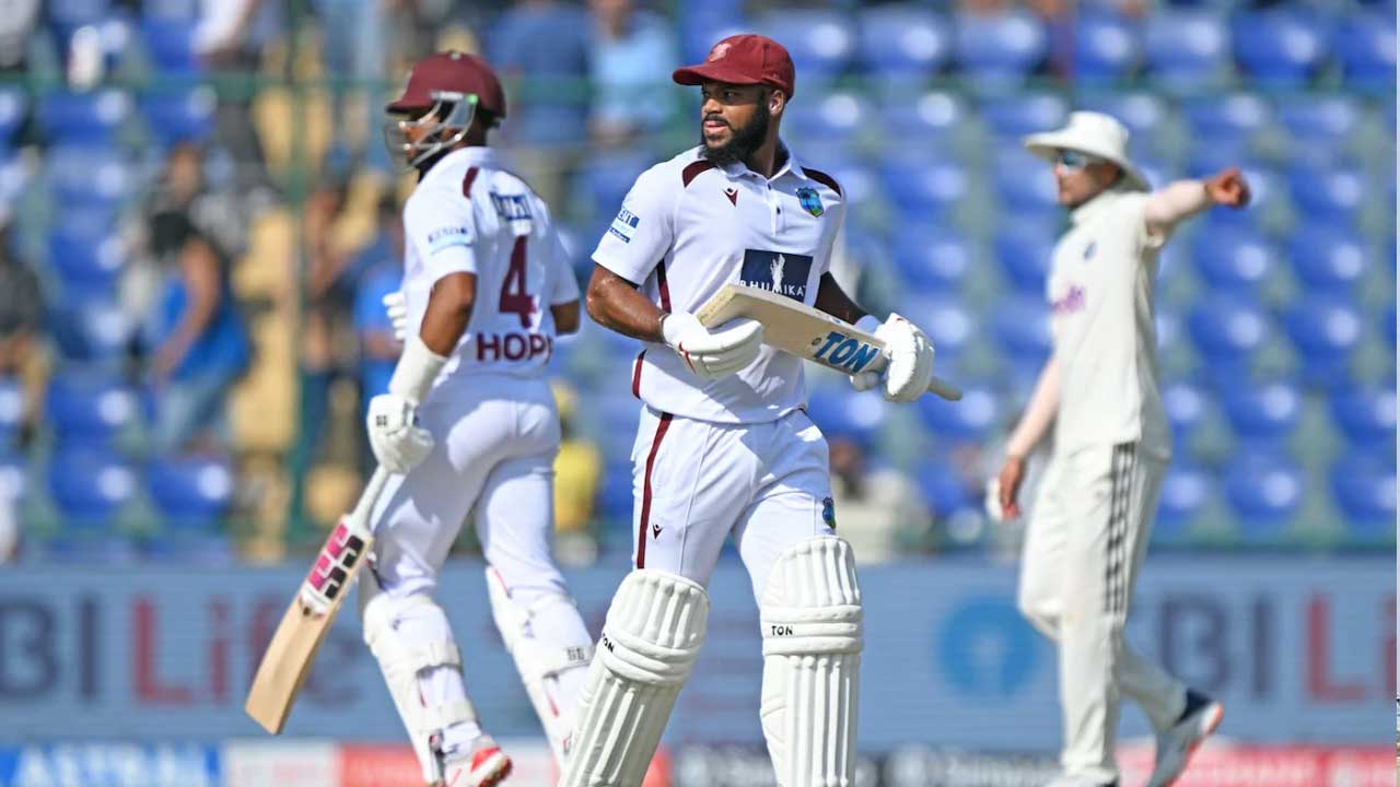 మూడో రోజు ఆటలో విండీస్ బ్యాటర్లు షై హోప్ 36, టెవిన్ ఇమ్లాక్ 21, అండర్సన్ ఫిలిప్ 24 నాటౌట్, జస్లిన్ గ్రేవెస్ 17, క్యేరి పియెరీ 23, వారికన్ 1, జొడెన్ సీలెస్ 13 పరుగులకు అవుటయ్యారు. తొలి ఇన్నింగ్స్లో వెస్టిండీస్ బ్యాటర్లలో అథనాజ్ (41) టాప్ స్కోరర్ గా నిలిచారు. భారత బౌలర్లలో కుల్దీప్ యాదవ్, 5, జడేజా 3, బూమ్రా, సిరాజ్ చెరో వికెట్ సాధించారు. విండీస్ టెయిలెండర్లు పియరీ – ఫిలిప్ జోడీ తొమ్మిదో వికెట్ 46, పదో వికెట్ కు సీలెస్- ఫిలిప్ 27పరుగులు జోడించి భారత బౌలర్ల సహనానికి పరీక్ష పెట్టారు. ఆ తర్వాత ఫాలో ఆన్ ఆడుతున్న విండీస్ రెండో ఇన్నింగ్స్ లో ఓపెనర్లు జాన్ కాంప్ బెల్ 87 నాటౌట్, షై హోప్ 66పరుగులతో రాణించి ఆదుకున్నారు. కాంప్బెల్, షైయ్ హోప్ జంట మూడో వికెట్కు 138 పరుగుల భాగస్వామ్యాన్ని (207 బంతుల్లో) నెలకొల్పింది.అథెంజ్ 7, చందర్ పాల్ 10పరుగులకు ఔటయ్యారు. సిరాజ్, వాషింగ్టన్ సుందర్ చెరో వికెట్ సాధించారు.