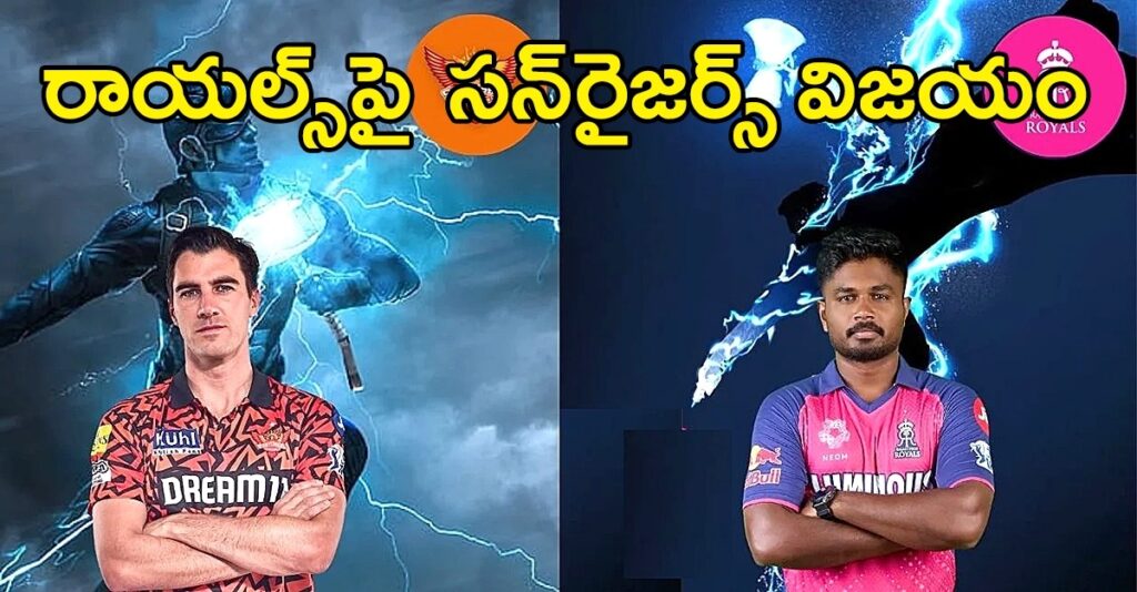ఐపిఎల్–2024లో భాగంగా హైదరాబాద్లో జరుగుతున్న 50వ మ్యాచ్లో సన్రైజర్స్ హైదరాబాద్, రాజస్థాన్ రాయల్స్ జట్లు తలపడగా, విజయం సన్రైజర్స్ను వరించింది. టాస్ గెలిచి మరో ఆలోచన లేకుండా బ్యాటింగ్కు దిగిన హైదరాబాద్, పవర్ప్లేలో బాగా తడబడింది. 35 పరుగులకే రెండు వికెట్లు కోల్పోయి దీనస్థితిలో ఉన్న హైదరాబాద్ను ట్రావిస్ హెడ్ (44 బంతుల్లో 58), తెలుగు కుర్రాడు నితీశ్ కుమార్ రెడ్డి (42 బంతుల్లో 76) ఆదుకున్నారు. ముఖ్యంగా నితీశ్ రెచ్చిపోయి సిక్సర్ల మీద సిక్సర్లు దంచి కొట్టాడు. హెడ్ అవుటయిన తర్వాత క్లాసెన్, నితీశ్తో జతకలిసి స్కోరుబోర్డును పరుగులెత్తించాడు. చివరికి సన్రైజర్స్ నిర్ణీత 20 ఓవర్లలో 3 వికెట్ల నష్టానికి 201 పరుగులు చేసింది. ఒక దశలో 150 పరుగులు కూడా కష్టసాధ్యమనుకున్న హైదరాబాద్ వీరిద్దరి సహకారంతో 200 పరుగుల మార్కును దాటగలిగింది.