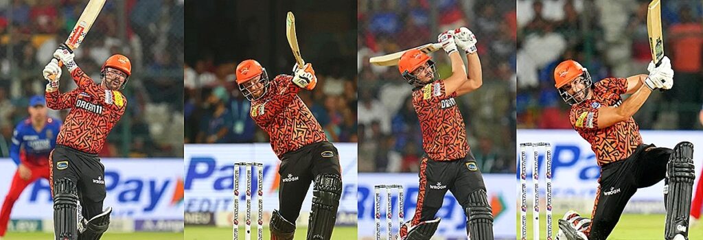 ఓపెనర్ ట్రావిస్ హెడ్ ఈ మ్యాచ్లో నరసింహావతారమెత్తాడు. బెంగళూరు బౌలర్లపై గెరిల్లాదాడి చేసి, ఎడాపెడా షాట్లతో ఉగ్రతాండవం చేశాడు. క్రీజులో అడుగుపెట్టినప్పటి నుంచే ఊచకోత మొదలుపెట్టిన ఈ ఆస్ట్రేలియన్ ఆటగాడు.. కేవలం 41 బంతుల్లోనే 9 ఫోర్లు, 8 సిక్సులతో 102 పరుగులు చేశాడు. ఇది ఐపిఎల్లో 4వ వేగవంతమైన సెంచరీ. అతనితో పాటు ఓపెనర్గా వచ్చిన అభిషేక్ శర్మ సైతం.. క్రీజులో ఉన్నంతవరకు మెరుపులు మెరిపించాడు. 22 బంతుల్లోనే 2 ఫోర్లు, 2 సిక్సుల సహకారంతో 34 పరుగులు చేశాడు. ఇక అభిషేక్ ఔట్ అయ్యాక వచ్చిన ప్రమోషన్పై 3వ నంబర్లో వచ్చిన క్లాసెన్, మాస్ ఇన్నింగ్స్తో ఇరగదీసాడు. ముందు కాస్తా స్లోగా మొదలుపెట్టిన క్లాసెన్ తర్వాత పరుగులతో రఫ్ఫాడించాడు. 31 బంతుల్లోనే 2 ఫోర్లు, 7 సిక్సుల సహాయంతో 67 పరుగులు చేశాడంటే ఎంతటి దూకుడో అర్థం చేసుకోవచ్చు.