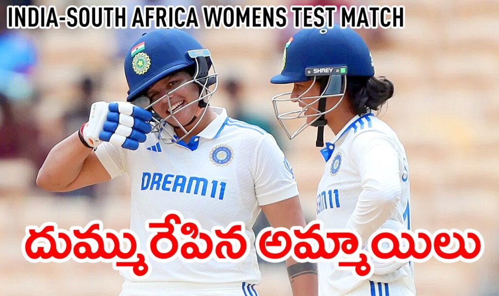 మహిళా టీమిండియా టెస్ట్ క్రికెట్లో చరిత్ర సృష్టించింది(India Women Criket team creates History). జట్టు ఓపెనర్లు కదం తొక్కి భారీ స్కోరుకు బాటలు వేశారు. షెఫాలీ వర్మ మిరుమిట్లు గొలిపే డబుల్ సెంచరీ(Double Century)తో రెచ్చిపోగా, స్మృతి మంధాన తనదైన శైలిలో (Century) శతక్కొట్టింది. దీంతో ఆట మొదటిరోజే భారత జట్టు నాలుగు వికెట్ల నష్టానికి 525 పరుగుల భారీ స్కోరు చేసి రికార్డు సృష్టించింది(525/4 First Day Stumps). మహిళల క్రికెట్లో ఒకేరోజూ అత్యధిక పరుగులు చేసిన జట్టుగా భారత జట్టు చరిత్ర సృష్టించింది(Highest score in single day). అమ్మాయిల క్రికెట్ చరిత్రలో అత్యధిక పరుగుల భాగస్వామ్యం నెలకొల్పిన ఓపెనింగ్ జోడీగానూ షెఫాలీ-స్మృతి తమ పేర రికార్డు రాసుకున్నారు. ఇలా తొలి రోజే ఎన్నో రికార్డులు సృష్టించిన టీమిండియా, భారీ విజయంపై కన్నేసింది.