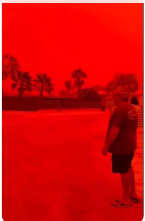 ఎర్రగా మారిపోయిన ఆకాశం.. భయాందోళనలో జనం!