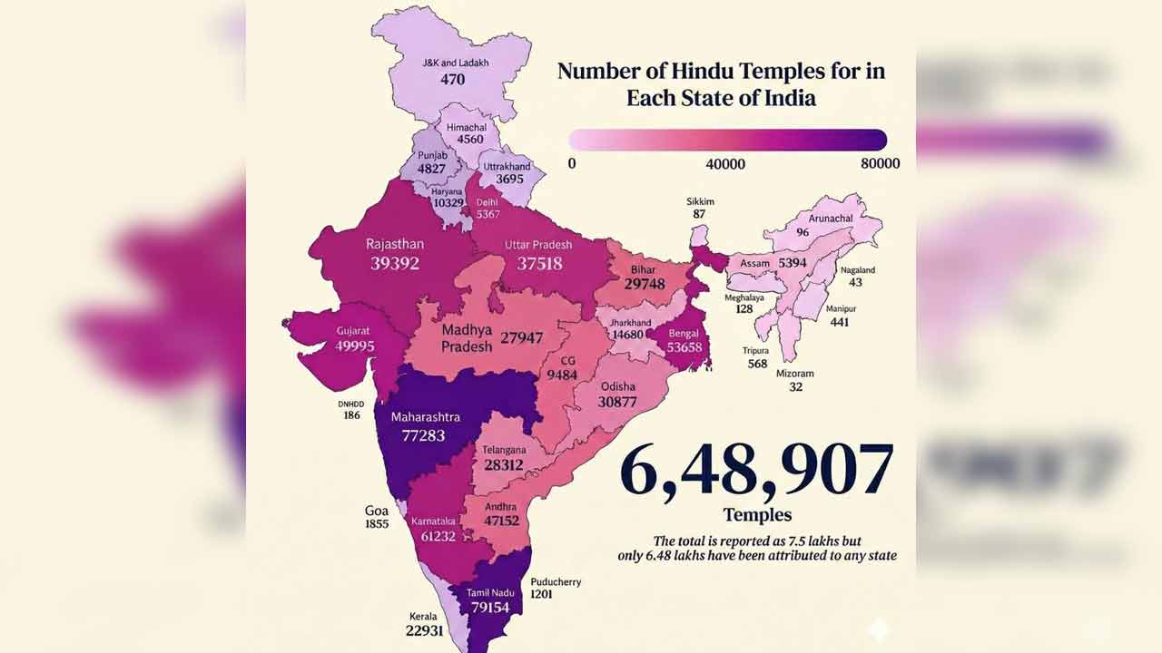 దేశంలో 6,48,907 ఆలయాలు.. అత్యధికంగా తమిళనాడులోనే..!