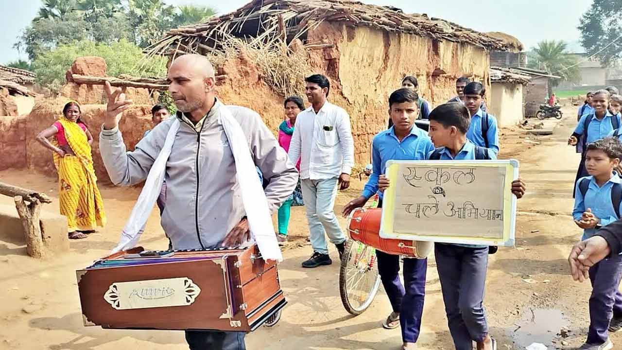 హర్మోనియం వాయిస్తున్న టీచర్.. బడిబాట పడుతున్న విద్యార్థులు