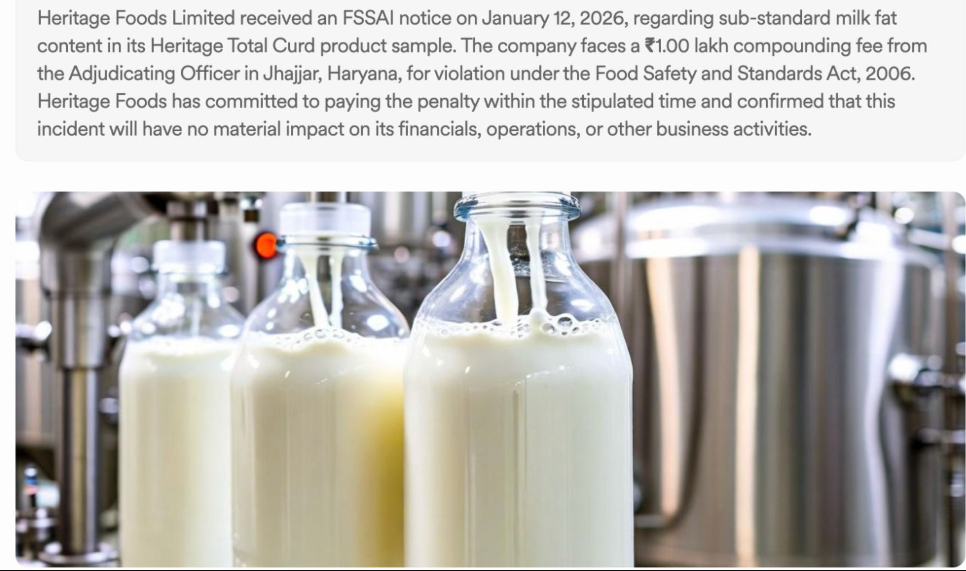 హెరిటేజ్ కు షాక్..నాణ్యత లోపాలపై లక్ష ఫైన్!