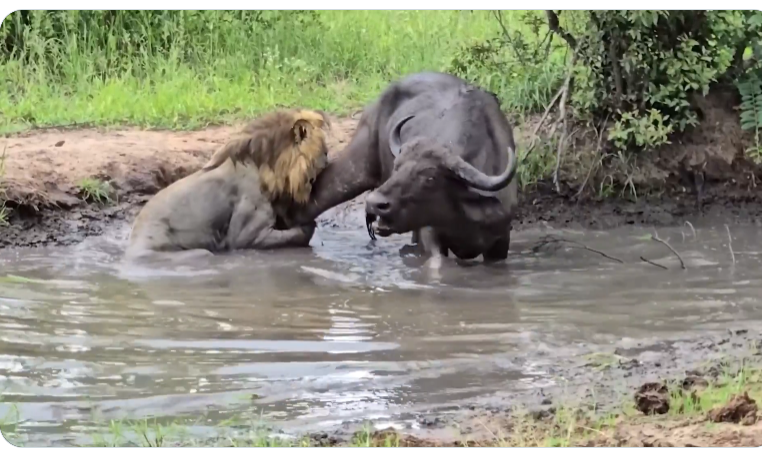 సింహాన్ని తరిమిన దున్నల మంద.. వైరల్ వీడియో