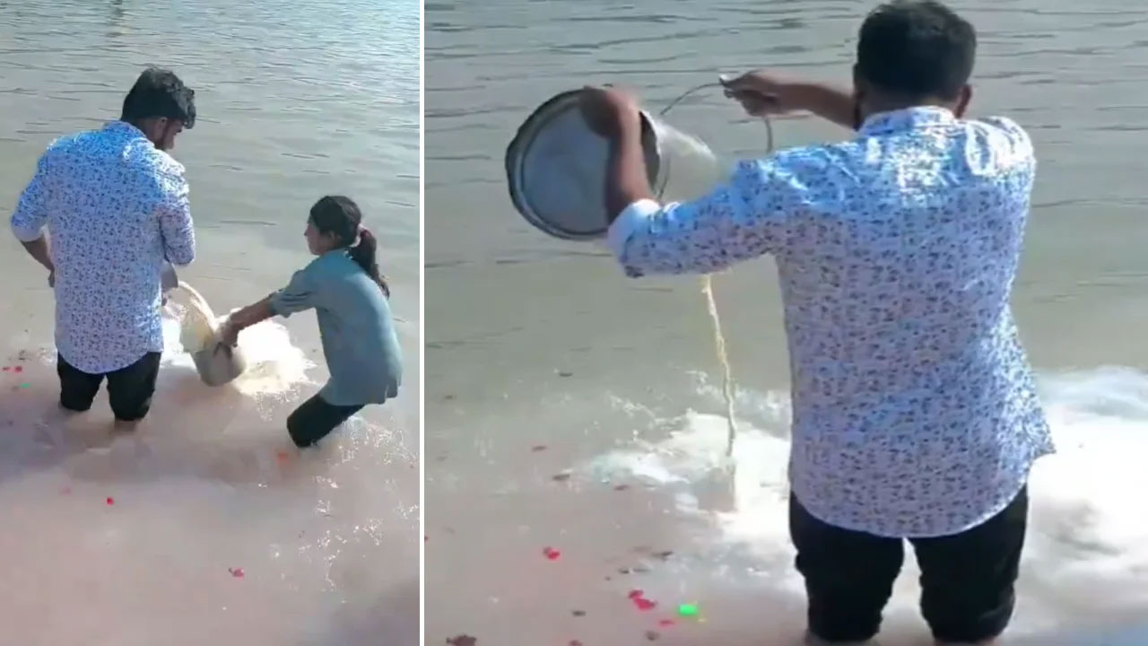 అంధ భక్తి నిర్వాకం..విమర్శల పాలైన గంగా పాలాభిషేకం