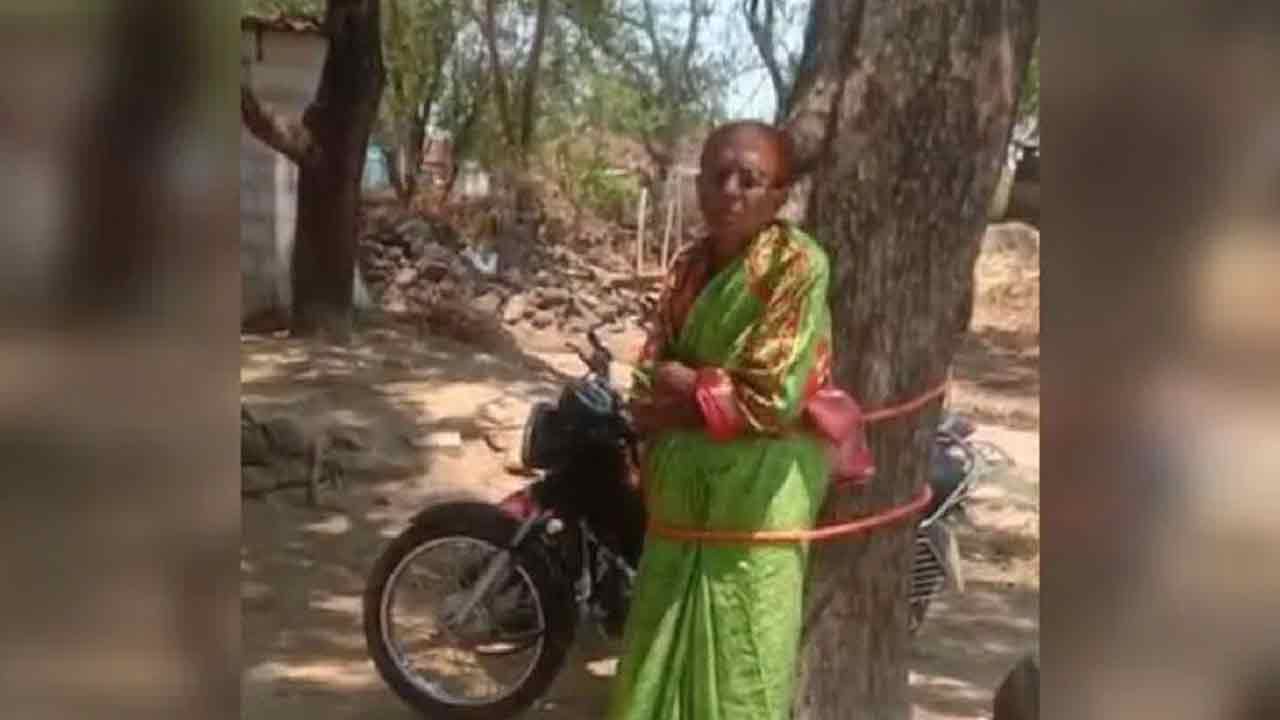 భర్త చేసిన తప్పుకు.. అంగన్వాడీ టీచర్ను చెట్టుకు కట్టేశారు