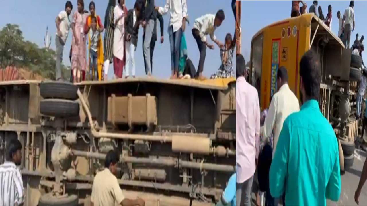 శంషాబాద్ సమీపంలో స్కూల్ బస్సు బోల్తా