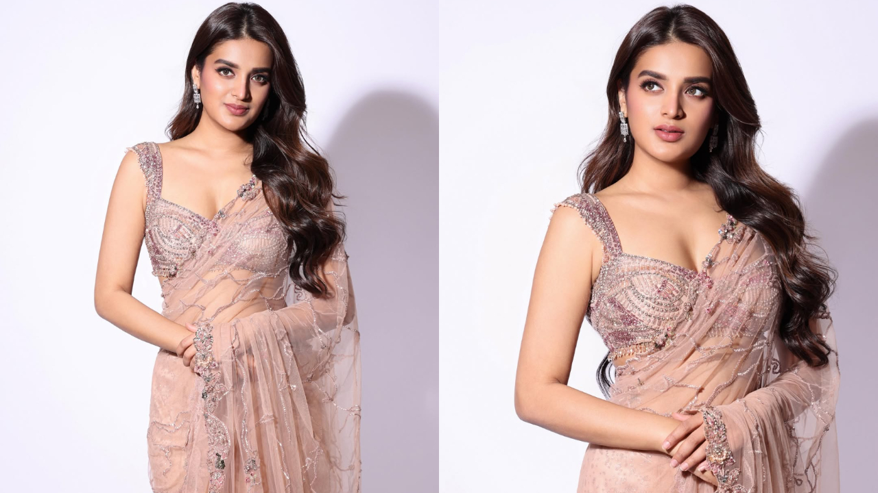 పింక్ చీరలో నిగనిగలాడుతూ నిధి అగర్వాల్