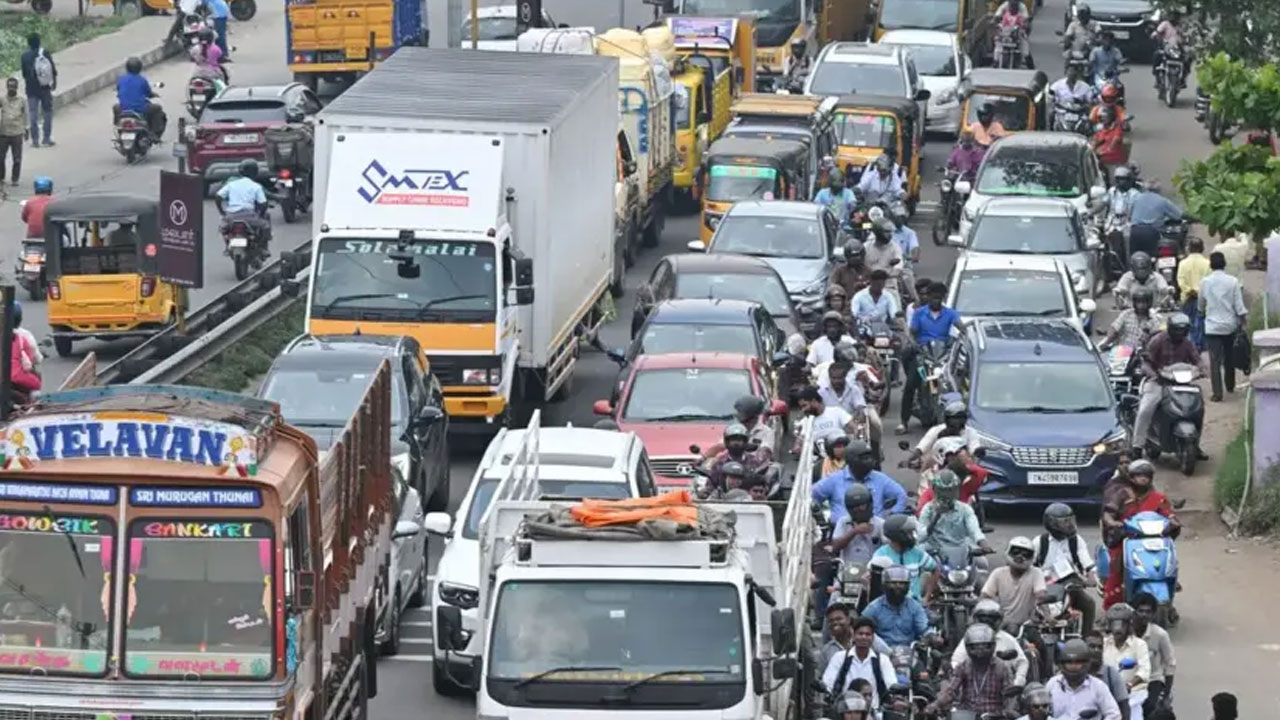 హైదరాబాద్ లో ఇంధన కొరత..రెండు కిలోమీటర్ల మేర ట్రాఫిక్ జామ్