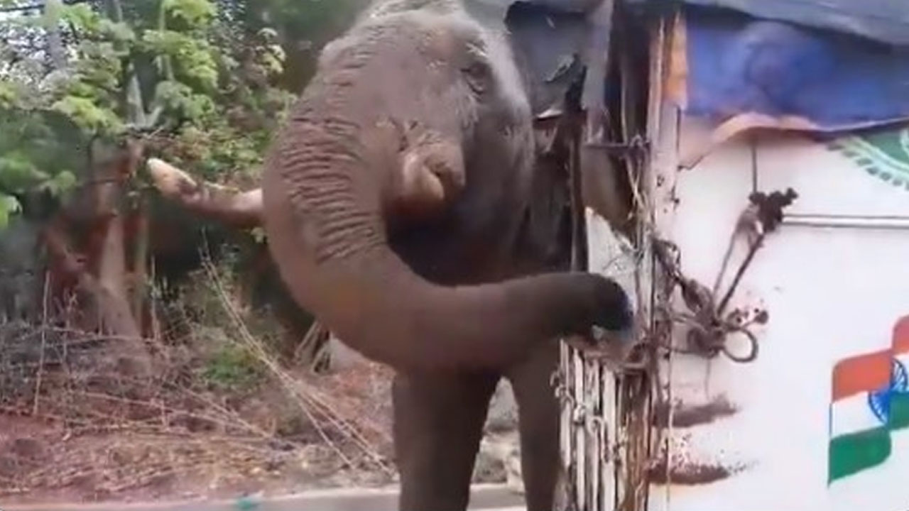 పోలింగ్ కేంద్రానికి వచ్చిన ఏనుగు..వీడియో వైరల్