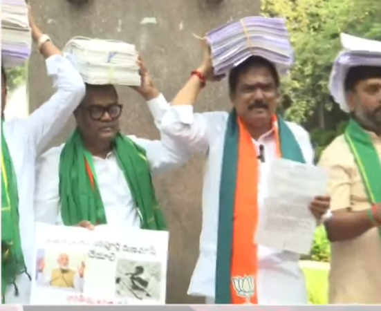 అసెంబ్లీకి రైతు సమస్యల దరఖాస్తులతో బీజేపీ ఎమ్మెల్యేలు