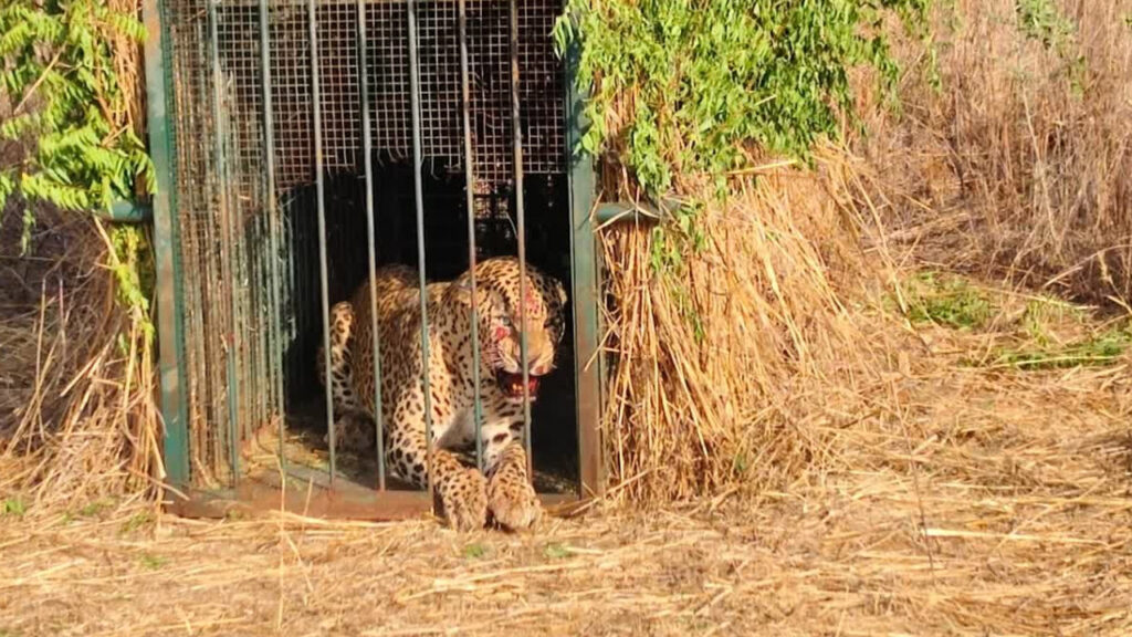Leopard caught : శంషాబాద్ ఎయిర్పోర్టు పరిధిలో గత ఐదు రోజులుగా కలకలం రేపుతున్న చిరుతపులి ఎట్టకేలకు చిక్కింది. ఆ చిరుతపులిని పట్టుకునేందుకు అధికారులు ఏర్పాటు చేసిన బోనులోని మేకను తినేందుకు వచ్చి ఇరుక్కుపోయింది. దాంతో శంషాబాద్ ఎయిర్పోర్టు పరిసర ప్రాంతాల ప్రజలు ఊపిరిపీల్చుకున్నారు. ఆ చిరుతపులి ముందుగా హైదరాబాద్లోని నెహ్రూ జూలాజికల్ పార్కుకు తరలించి వైద్య పరీక్షలు చేయించనున్నారు. వైద్య పరీక్షల అనంతరం దానిని నల్లమల అడవిలో వదిలేయనున్నట్లు అధికారులు తెలిపారు.