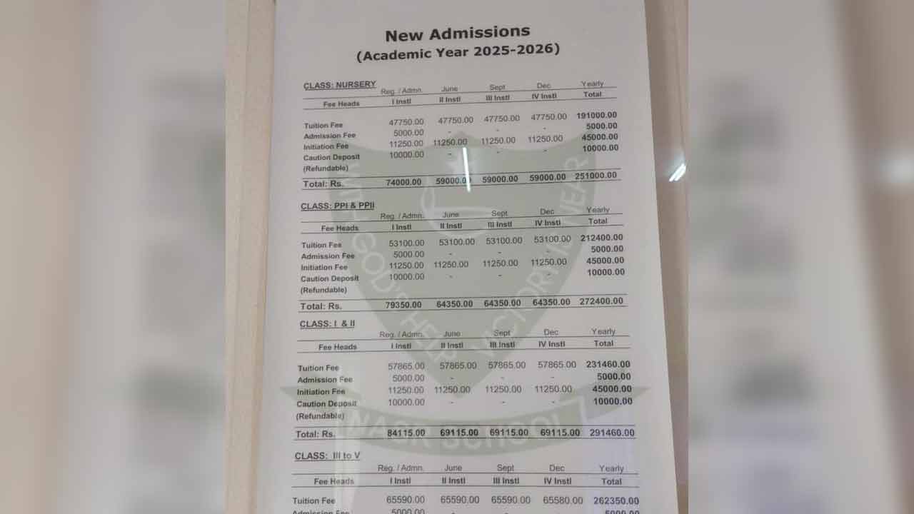 క్లాస్ పీపీ1, పీపీ2 కింద ఏడాదికి రూ. 2,72,400, క్లాస్ ఫస్ట్, సెకండ్ కింద రూ. 2,91,460, క్లాస్ థర్డ్ నుంచి ఐదో తరగతి వరకు రూ. 3,22,350 వసూలు చేస్తున్నారు. ఈ ఫీజులకు సంబంధించిన వివరాలను ఇండియా ధర్మపార్టీ వ్యవస్థాపక అధ్యక్షులు అనురాధ తివారీ( Anuradha Tiwari ) తన ఎక్స్ ఖాతాలో షేర్ చేశారు. ఈ ఫీజులను చూస్తుంటే.. ప్రతి నెల రూ. 21 చెల్లించి ఏబీసీడీలు కొనుగోలు చేయాల్సిన పరిస్థితి ఏర్పడిందని వ్యంగ్యంగా పేర్కొన్నారు తివారీ. ఈ స్థాయిలో ఫీజులు వసూలు చేసేందుకు టీచర్లు ఏం బోధిస్తున్నారని ప్రశ్నించారు.
