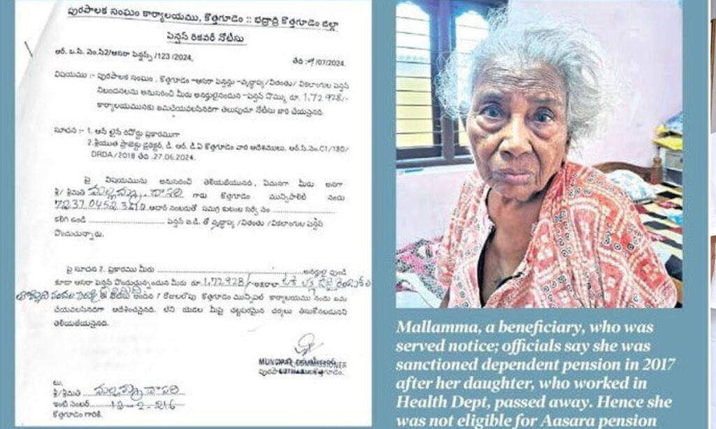 భద్రాద్రి కొత్తగూడెం జిల్లాలో దాసరి మల్లమ్మ అనే 80 ఏళ్ల ముసలమ్మకు ఆసరా పెన్షన్ కింద వచ్చిన ఒక లక్షా 72 వేల రూపాయలు వెనక్కు కట్టాలని నోటీసు ఇచ్చారని, ఒంటరి మహిళగా పక్షవాతంతో బాధపడుతూ ఉన్న దాసరి మల్లమ్మ వంటి వృద్ధుల నుంచి కేసీఆర్ సర్కారు ఇచ్చిన ఆసరా పెన్షన్ సొమ్మును తిరిగి లాక్కోవడానికి ప్రయత్నించడం రేవంత్ సర్కార్ అమానవీయ వైఖరికి నిదర్శనమని ఆగ్రహం వ్యక్తం చేశారు. వెంటనే పేదల మీద ఇటువంటి దుర్మార్గపు చర్యలు మానుకోవాలని, లేకుంటే ప్రజలే కాంగ్రెస్ సర్కార్ మీద తిరగబడతారన్నారు