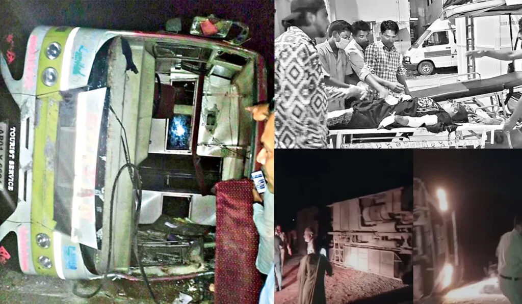 విధాత : తెలుగు రాష్ట్రాల్లో రెండు ప్రైవేటు ట్రావెల్స్ బస్సులు బొల్తా పడిన ఘటనలో ముగ్గురు ప్రయాణికులు మృతి చెందారు. ఆదిలాబాద్ నుంచి హైదరాబాద్ వెళ్తున్న ముస్కాన్ ట్రావెల్స్ ప్రైవేట్ బస్సు అదుపుతప్పి బోల్తా కొట్టిన ప్రమాదంలో ఒకరు మృతి చెందగా, మరో ఇద్దరికి తీవ్ర గాయాలయ్యాయి. ఆదిలాబాద్ నుండి హైదరాబాద్ కు 50మంది ప్రయాణికులతో వెళ్తున్న బస్సు అతివేగంతో అదుపు తప్పి బోల్తా పడింది.