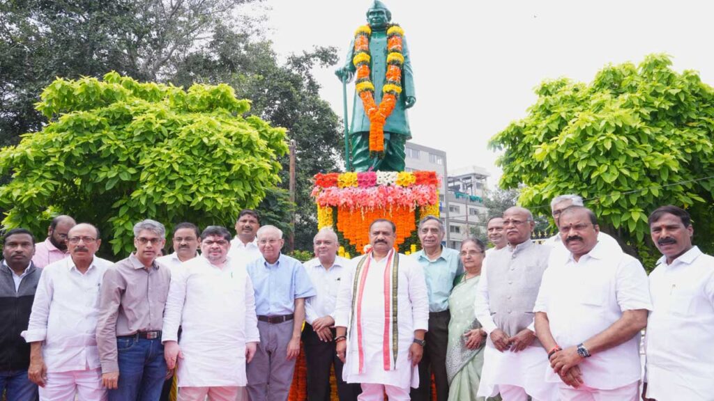 విధాత, హైదరాబాద్ : హైదరాబాద్ రాష్ట్ర తొలి ముఖ్యమంత్రి బూర్గుల రామకృష్ణారావు(Burgula Ramakrishna Rao) వర్ధంతి(death anniversary)సందర్బంగా ముఖ్యమంత్రి ఎ. రేవంత్ రెడ్డి( CM Revanth Reddy)ఎక్స్ వేదికగా నివాళులు అర్పించారు. స్వాతంత్ర్య సమరయోధుడిగా, సామాజిక సంస్కర్తగా, రాజనీతిజ్ఞుడుగా బూర్గులు చేసిన సేవలను శ్లాఘించారు. లిబర్టీ క్రాస్ రోడ్లో బూర్గుల రామకృష్ణారావు విగ్రహానికి టీపీసీసీ అధ్యక్షులు, ఎమ్మెల్సీ బి.మహేష్ కుమార్ గౌడ్(PCC Mahesh Kumar Goud) మంత్రి పొన్నం ప్రభాకర్(Ponnam Prabhakar) తదితరులు పూలమాలలు వేసి నివాళులర్పించారు.