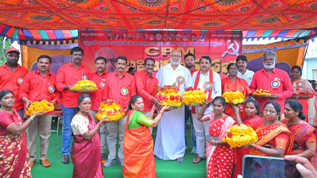 Telangana Peasants Armed Struggle | తెలంగాణ రైతాంగ సాయుధ పోరాట చరిత్రను వక్రీకరింస్తున్న బీజేపీ, ఆర్ఎస్ఎస్లను నిలదీయాలని సీపీఎం జాతీయ కార్యదర్శి ఏంఎ బేబీ పిలుపునిచ్చారు. వీర తెలంగాణ రైతంగ సాయుధ పోరాటంలో అమరులైన వీరులను తలచుకుంటూ సెప్టెంబర్ 1నుండి 17వరకు జిల్లాలో ఉత్సవాలను నిర్వహించారు. బుధవారం ముగింపు సభకు హాజరైన ఎంఏ బేబీని సీపీఎం జనగామ జిల్లా కమిటీ ఆధ్వర్యంలో పార్టీ జిల్లా కార్యదర్శి మోకు కనకారెడ్డి అధ్యక్షతన పట్టణంలోని కళ్లెం కమాన్ వద్ద పార్టీ కార్యకర్తలు ఘనంగా స్వాగతం పలికారు. ఈ సందర్బంగా ఏర్పాటు చేసిన భారీ బహిరంగ సభలో ఎంఏ బేబీ మాట్లాడారు. 1871 ఫ్రాన్స్లో పారీస్ కమ్యూన్ ఉద్యమంలో కార్మికులు తమ హక్కుల కోసం 70 రోజులపాటు పోరాటం చేస్తే తెలంగాణలో 1946- 51 వరకు అంటే 5సంవత్సరాలు నిజాం పరిపాలనకు వ్యతిరేకంగా పోరాటం జరిగిందన్నారు.