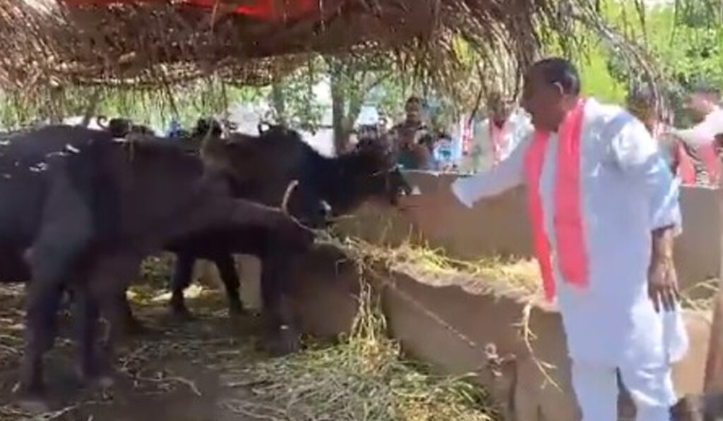 అయితే ఆ గేదే మల్లన్న చేతి గడ్డి మాత్రం తినలేదు. ఫోటోలకు ఫోజులిచ్చాకా మల్లారెడ్డి అక్కడి నుంచి ముందుకు కదిలారు. గేదెలను చూస్తే నాకు పాత రోజులు గుర్తుకు వచ్చాయంటూ ఈ సందర్భంగా మల్లారెడ్డి వ్యాఖ్యానించారు. పాలమ్మినా..పూలమ్మినా అంటూ తన పంచ్ మార్క్ డైలాగ్లతో అదరగొట్టే మల్లారెడ్డి మరోసారి తన పాత రోజులను తలపించేలా గేదెలకు గడ్డి వేసిన వీడియో వైరల్గా మారింది.