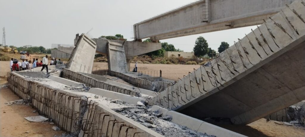 విధాత, వరంగల్ ప్రతినిధి: జయశంకర్ భూపాలపల్లి జిల్లా టేకుమట్ల మండలంలోని గర్మి ల్లపల్లి- పెద్దపెల్లి జిల్లా ముత్తారం మండలం ఓడేడు గ్రామాల మధ్య మానేరు వాగుపై నిర్మాణం మధ్యలో ఆగిపోయిన బ్రిడ్జి గ్యాడర్లు (బెడ్లు) సోమవారం రాత్రి వీచిన గాలికి (ఓడేడు పరిధిలో) కూలిపోయాయి. శకలాలు తాత్కాలిక రోడ్డుపై పడ్డగా రాకపోకలకు అంతరాయం ఏర్పడింది. గత జూలై నెలలో వరదలకు టేకుమట్ల రాఘవ రెడ్డి పేట గ్రామాల మధ్యలోని చలివాగు పై నిర్మించిన బ్రిడ్జ్ వరదకు కొట్టుకుపోవడం.., ఇప్పుడు గాలికి ఈ బ్రిడ్జ్ కూలడం మండలంలో చర్చనీయాంశమవుతుంది.