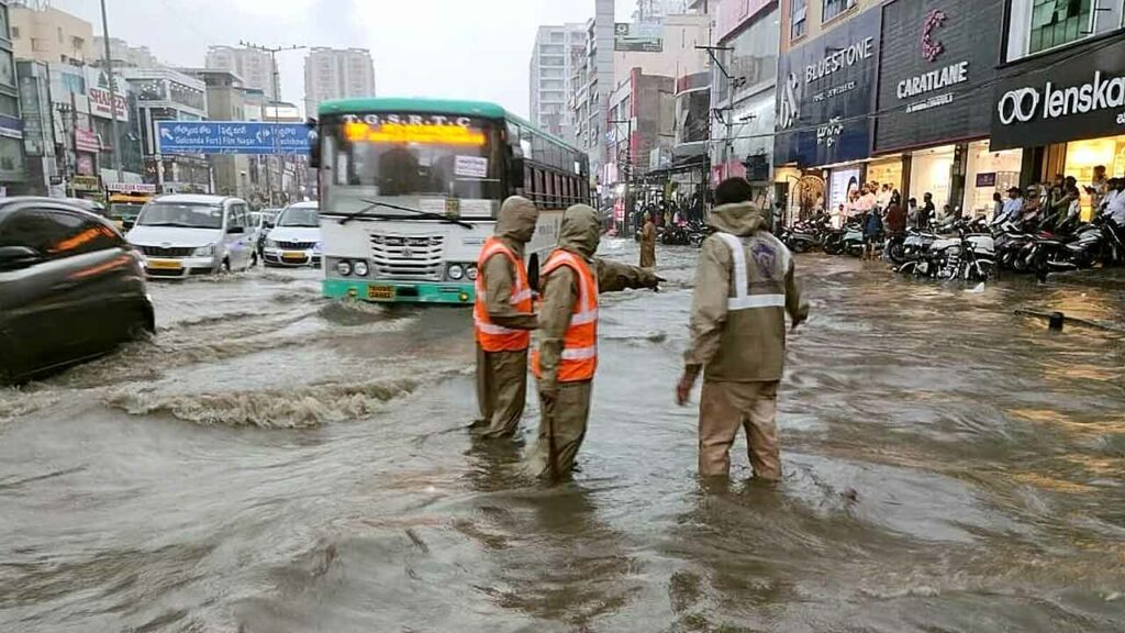 Heavy Rains | హైదరాబాద్ : గత రెండు రోజుల నుంచి రాజధాని హైదరాబాద్( Hyderabad ) వ్యాప్తంగా వర్షాలు కురుస్తోన్న సంగతి తెలిసిందే. సోమ, మంగళవారాల్లో కురిసిన భారీ వర్షానికి( Heavy Rains ) హైదరాబాద్ నగరం అతలాకుతలమైంది. వరద నీటితో నగర వాసులు తీవ్ర ఇబ్బందులు ఎదుర్కొన్నారు. ప్రయాణికులు, వాహనదారులు కూడా గంటల తరబడి ట్రాఫిక్లో ఇరుక్కుపోయారు.