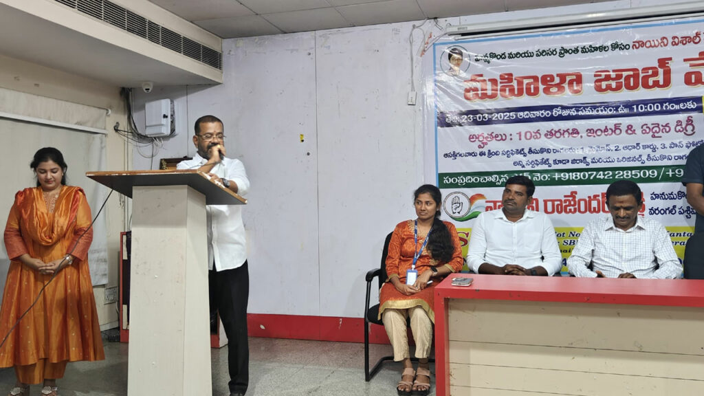 వరంగల్ పరిసర ప్రాంతాల యువతులకుఉద్యోగ అవకాశాలు కల్పించడం కోసం ముందుకు వచ్చిన ఫాక్స్ కాన్ సంస్థ ప్రతినిధి బృందాన్ని ప్రత్యేకంగా హనుమకొండ,వరంగల్ జిల్లా నిరుద్యోగుల తరపున శుభాకాంక్షలు తెలియజేశారు. ఈ జాబ్ మేళా ద్వారా ఉద్యోగ కల్పనలు జరగాలని ఎమ్మెల్యే నాయిని ఆకాంక్షించారు. ఈ కార్యక్రమంలో ఫాక్స్కన్ సంస్థ ప్రతినిధి ఆనందం కుమార్,పరమేష్,పార్వతి వాగ్దేవి కాలేజ్ అధినేత దేవేందర్ రెడ్డి, యువతులు పాల్గొన్నారు.