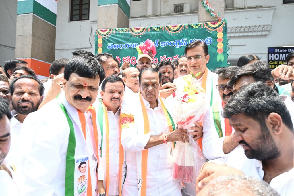 విధాత: మెదక్ ప్రత్యేక ప్రతినిధి: మల్కాజ్గిరి మాజీ శాసనసభ్యులు మైనంపల్లి హనుమానంతరావు, *మెదక్ ఎంపీ అభ్యర్థి నీలం మధు ముదిరాజ్,నర్సాపూర్ ఇన్చార్జి ఆవుల రాజిరెడ్డి, గజ్వేల్ నియోజికవర్గ ఇంచార్జ్ నర్సారెడ్డి,డీసీసీ అధ్యక్షులు ఆంజనేయులు గౌడ్ నేతృత్వంలో ఏఐసీసీ సెక్రటరీ రోహిత్ చౌదరి సమక్షంలో కాంగ్రెస్ పార్టీ లో చేరారు.
