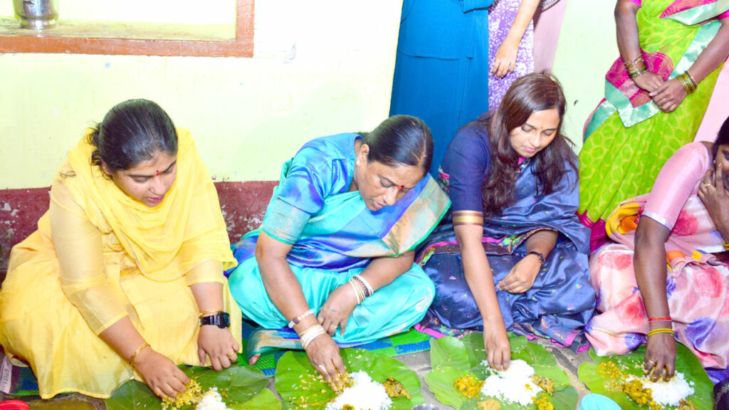 శ్రీరామనవమి సందర్భంగా భద్రాచలంలో ముఖ్యమంత్రి రేవంత్ రెడ్డి సన్న బియ్యం లబ్ధిదారుడు శ్రీనివాస్ ఇంట్లో భోజనం చేశారు. ఈ క్రమంలోనే మంత్రి కొండా సురేఖ స్థానికంగా సన్న బియ్యం లబ్ధిదారుడు ఇంట్లో భోజనం చేశారు. ఈ కార్యక్రమంలో మంత్రితోపాటు వరంగల్ జిల్లా కలెక్టర్ డాక్టర్ సత్య శారద, జీడబ్ల్యూఎంసీ కమిషనర్ అశ్విని తానాజీ వాకాడే తదితరులు పాల్గొన్నారు. ఈ సందర్భంగా మంత్రి కొండా సురేఖ మాట్లాడుతూ స్వరాష్ట్రం నుండి సురాష్ట్రం దాకా కాంగ్రెస్ ప్రభుత్వానిదే కృషి అని కొనియాడారు. 2014లో మనకు తెలంగాణ వచ్చింది కాంగ్రెస్ పార్టీ వల్లనేనని చెప్పారు. నేడు మన తెలంగాణలో సురాష్ట్ర పాలన అందుతున్నది కూడా కాంగ్రెస్ పార్టీ ప్రభుత్వం వల్లనే అని అన్నారు.