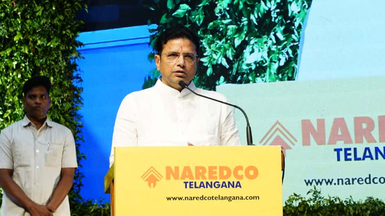 ‘ఎలివేటెడ్ కారిడార్లు, మెట్రో ఫేజ్ – 2, భారత్ ఫ్యూచర్ సిటీ, మూసీ సుందరీకరణ, రీజినల్ రింగ్ రోడ్డు తదితర ప్రతిష్ఠాత్మక ప్రాజెక్టులతో తెలంగాణ రూపురేఖలు మారిపోనున్నాయి. డిసెంబర్ నాటికి ‘ఫ్యూచర్ సిటీ’లో జోనలైజేషన్ ప్రక్రియను పట్టలెక్కించాలనే పట్టుదలతో ఉన్నాం. అక్కడే 200 ఎకరాల్లో అంతర్జాతీయ ప్రమాణాలతో అభివృద్ధి చేయనున్న ఏఐ సిటీకి రెండు, మూడు నెలల్లోనే భూమి పూజ చేయబోతున్నాం’ అని వివరించారు. రాష్ట్ర ఆర్థిక వ్యవస్థకు వెన్నెముకగా నిలుస్తున్న రియల్ ఎస్టేట్ రంగానికి ప్రభుత్వం తరఫున అన్ని విధాలుగా అండగా ఉంటామని హామీ ఇచ్చారు. కార్యక్రమంలో నారెడ్కో తెలంగాణ ప్రతినిధులు విజయసాయి మేక, కాళీ ప్రసాద్ దామెర, డా.లయన్ కిరణ్, కె.శ్రీధర్ రెడ్డి, ఆర్.వెంకటేశ్వరరావు తదితరులు పాల్గొన్నారు