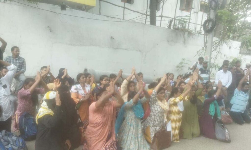 వేతనాల కోసం సీఎం ఇంటి ముందు నర్సింగ్ స్టాఫ్ ఆందోళన