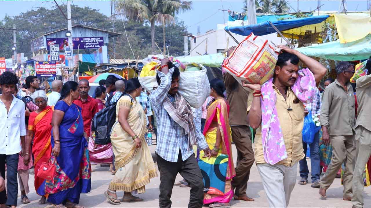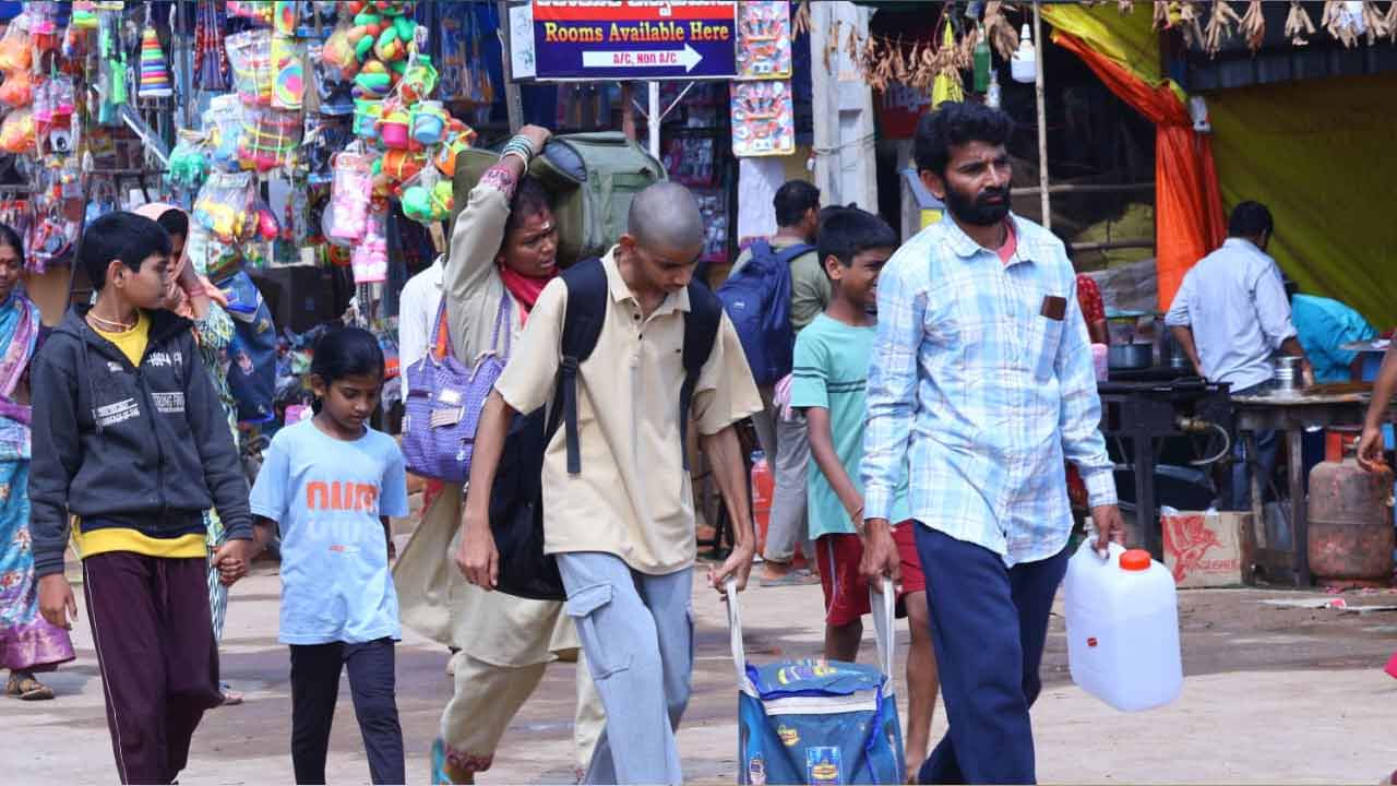 ఇళ్లకు తిరుగు ప్రయాణమైన భక్తులు
