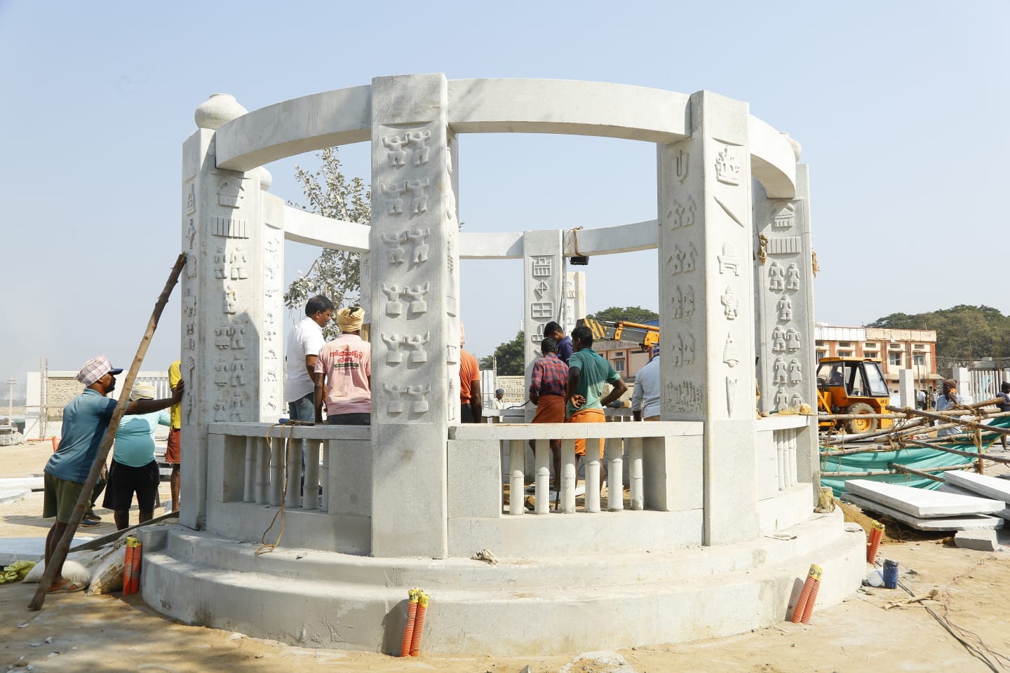 రాష్ట్ర ప్రభుత్వం ఆధ్వర్యంలో సుమారు రూ. 251 కోట్ల వ్యయంతో మేడారం సమ్మక్క, సారల్మ గద్దెల ప్రాంగణాన్ని పునరుద్ధరించడమే కాకుండా, మేడారంలో మాస్టర్ ప్లాన్ అమలు చేస్తూ శాశ్వత నిర్మాణాలు చేపట్టిన విషయం తెలిసిందే. అంతకు ముందున్న గద్దెల చుట్టూ రాతి స్థంభాలు, రాతి ప్రాకారం, రాతితో తొమ్మిది మహా ద్వారాలు నిర్మించారు. ఈ సందర్భంగా గద్దెల పై ఉన్న రాతి స్తంభాలు, రాతి ప్రాకారం లోపల, బయట, రాతి ద్వారాల పై దాదాపు 7వేలకు పై వివిధ రకాల చిత్రాలు చెక్కారు. ఈ విధంగా చెక్కిన చిత్రాల్లో శివలింగం, స్వస్తిక్ ను పోలిన చిత్రం, త్రిశూలం, తిరు నామాల చిత్రాల పై వివాదం నెలకొన్న విషయం తెలిసిందే.