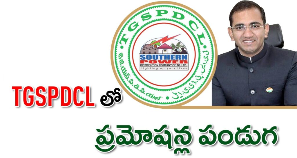 తెలంగాణ విద్యుత్ దక్షిణ పంపిణీ సంస్థ(TGSPDCL) తమ ఉద్యోగుల పదోన్నతుల విషయమై తీపి కబురు వినిపించింది. సంస్థవ్యాప్తంగా 2263 మందికి ప్రమోషన్లు(Promotions to 2263 employees) కల్పించింది. ఈ విషయమై సంస్థ ఒక ప్రకటన చేసింది. ఇందులో 16 మంది పి అండ్ జి(P&G) ఆఫీసర్లు కాగా, 47 గురు అకౌంట్స్నుండి, 2099 మంది ఉద్యోగులు ఆపరేషన్స్ అండ్ మెయిన్టెనెన్స్(O&M) నుండి ఉన్నారు.