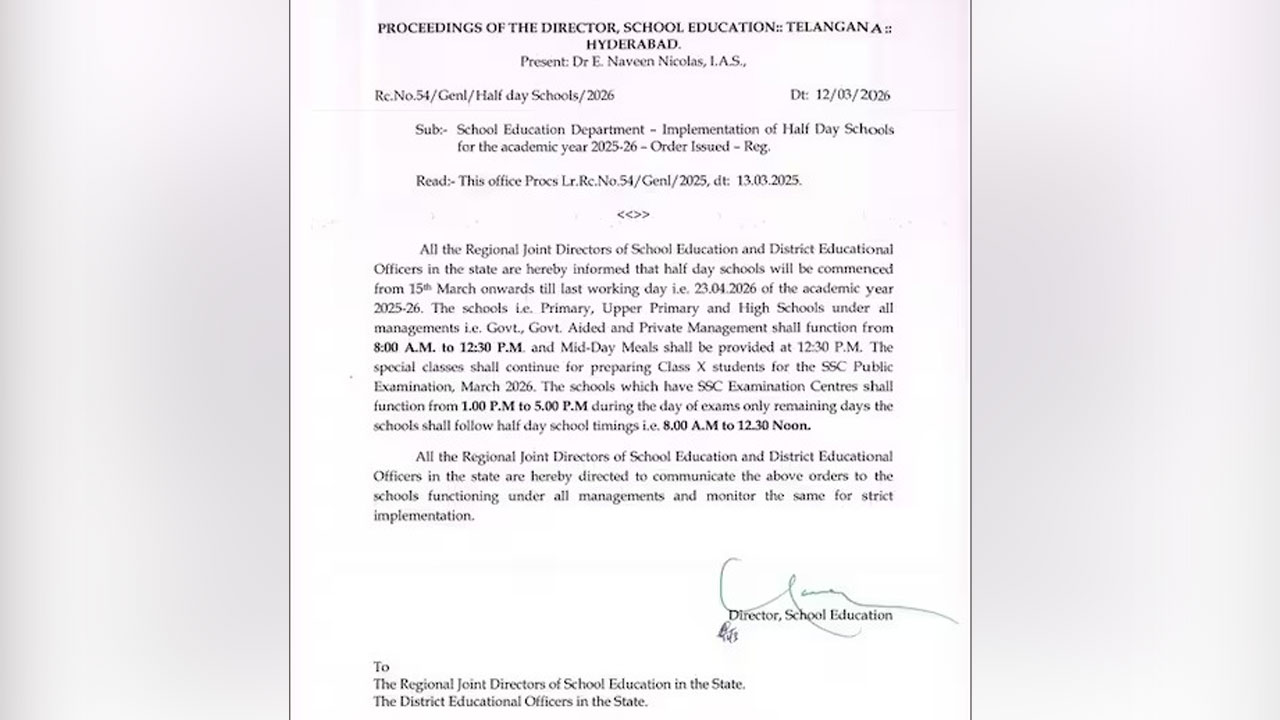 Half Day Schools : తెలంగాణలో ఈ నెల 15నుంచి ఒంటి పూట బడులు