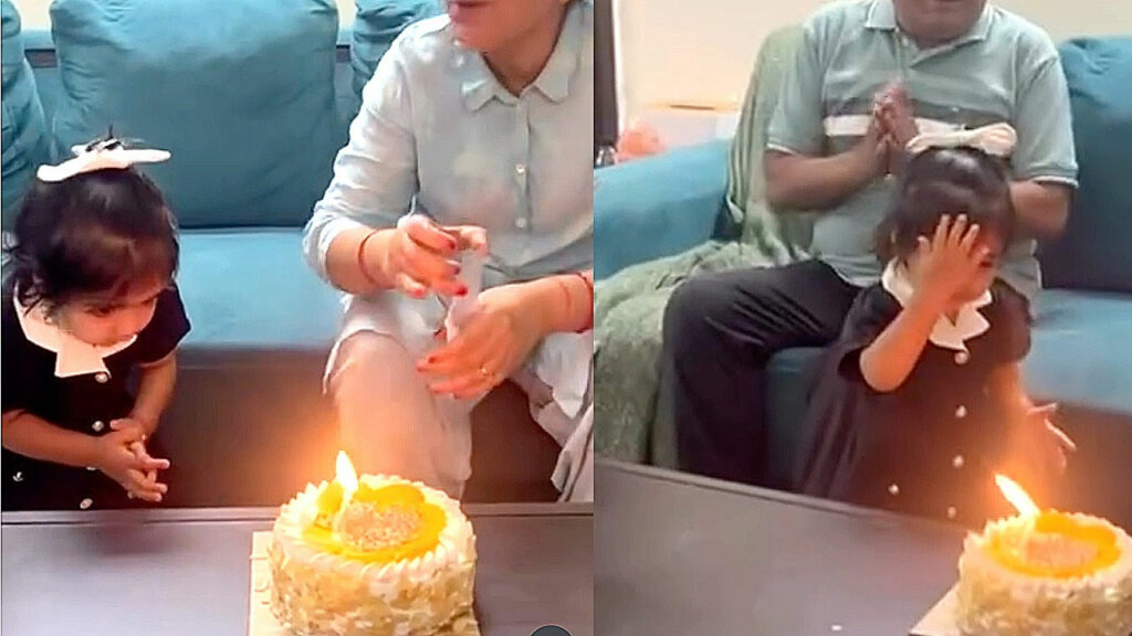 Viral Little Girl Video | పుట్టినరోజు వేడుకలు అనగానే కేక్ కట్ చేయడం, కాండిల్స్ ఆర్పడం, ఫోటోలు తీయడం అనే ఫ్యాషన్ మనకు అలవాటుగా మారిపోయింది. కానీ ఈ వేడుకలోనూ సంప్రదాయం, సంస్కృతి ప్రతిఫలిస్తే అది ఒక హృద్యమైన క్షణంగా మారుతుంది. తాజాగా సోషల్ మీడియాలో వైరల్ అవుతున్న ఒక వీడియోలో ఒక అద్భుత క్షణం కనిపించింది. ఒక చిన్నారి తన పుట్టినరోజు సందర్భంగా కొవ్వొత్తితో వెలుగుతున్న కేక్ను హారతి పళ్లెంలా అనుకుంది. అందులోని కొవ్వొత్తి దీపంలా కనబడటంతో దాన్ని ఆర్పడం బదులు రెండు చేతులు జోడించి ప్రార్థన చేసింది. ఈ అమాయకత్వాన్ని చూసిన కుటుంబ సభ్యులు ఆశ్చర్యపోగా, మనవరాలికి తోడుగా అమ్మమ్మ కూడా నమస్కరించింది.