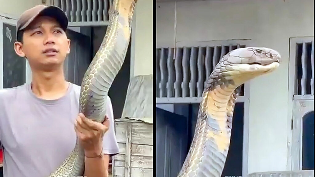 కింగ్ కోబ్రా ప్రపంచంలోనే పొడవైన అతి విషపూరిత పాము. దీని శాస్త్రీయ నామం ఓఫియోఫాగస్ హన్నా. ఇది గరిష్ఠంగా 18 అడుగల వరకూ పెరుగుతుంది. దీని పడగ విభిన్నమైనది. ఏదైనా ముప్పు ఎదురవనుందని అర్థమైతే వెంటనే తన పడగను వెడల్పు చేసి.. అలర్ట్ అవుతుంది. ఈ కోబ్రా జాతి.. దక్షిణ చైనా, దక్షిణాసియా దేశాల్లోని అటవీ ప్రాంతాల్లో ఎక్కువగా కనిపిస్తూ ఉంటుంది. దీని విషం అత్యంత ప్రమాదకరమైనది. ఒక మధ్యవయస్కుడి శ్వాస కోస వ్యవస్థ స్తంభించిపోవడానికి, పక్షవాతానికి, ఆఖరుకు మరణానికి ఒక్క కాటు చాలు.