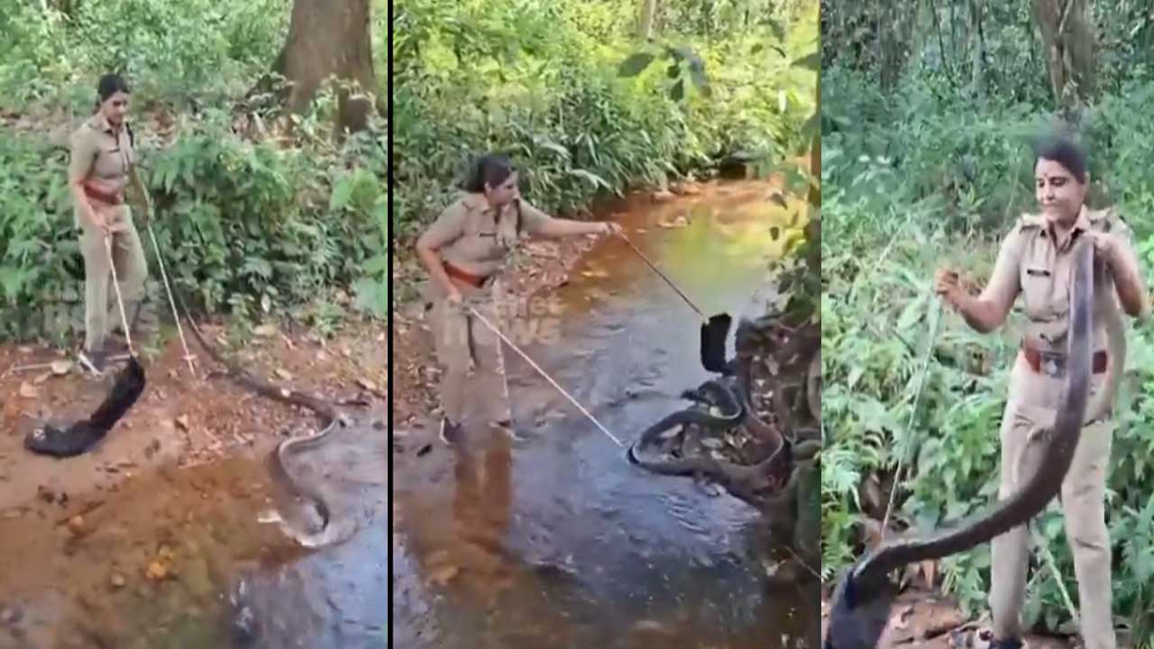 King Cobra| ఫారెస్టు అక్కా..తొలి ప్రయత్నంలోనే కింగ్ కోబ్రాను పట్టేసింది