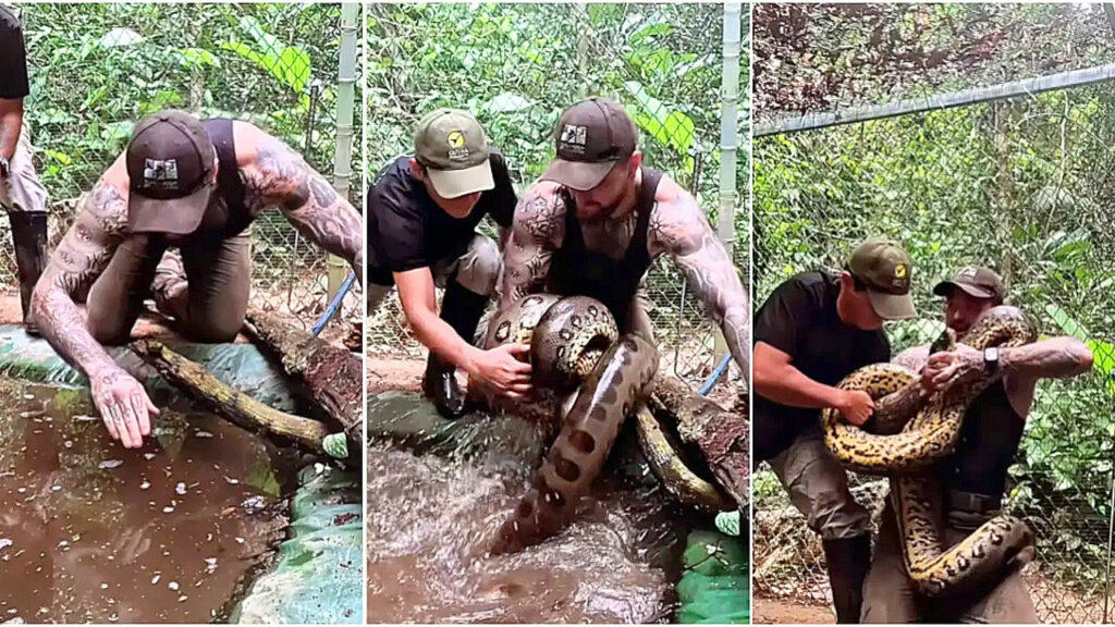 Anaconda rescued | ఒక వ్యక్తి చేతులతోనే భారీ గ్రీన్ అనాకోండాను మురికి నీటితో నిండిన చెరువులో నుండి పట్టుకున్న దృశ్యం ప్రస్తుతం ఇంటర్నెట్లో హల్చల్ చేస్తోంది. ఈ వీడియోను డిలాన్ జోసెఫ్ సింగర్ అనే ఇన్స్టాగ్రామ్ యూజర్ ఇటీవల షేర్ చేయగా, అది క్షణాల్లో వైరల్ అయింది. పాములంటే సాధారణంగా భయం ఉండే మనుషులకు, ఈ వీడియోలో కనిపించిన ధైర్యం ఆశ్చర్యాన్ని కలిగిస్తోంది. అతను ఎటువంటి రక్షణ గేర్ లేకుండా చెరువులోకి దిగాడు. పాము ఎక్కడ ఉందో ముందే తెలుసుకున్నట్లు, నిర్భయంగా దానిని పట్టుకుని బయటకు లాగాడు. అది కూడా ఏ సాధారణ పాము కాదు – దాదాపు 15 అడుగుల పొడవుతో ఉండే గ్రీన్ అనాకోండా. వీడియోలో అతను పామును మృదువుగా పట్టుకుని, దానిని పూర్తిగా నీటిలో నుండి లాగడం చూస్తే సర్పాలను తాకడమే కాదు – పట్టుకోవడంలో అతనికి ఎంతో అనుభవం ఉందని అర్థమవుతోంది.