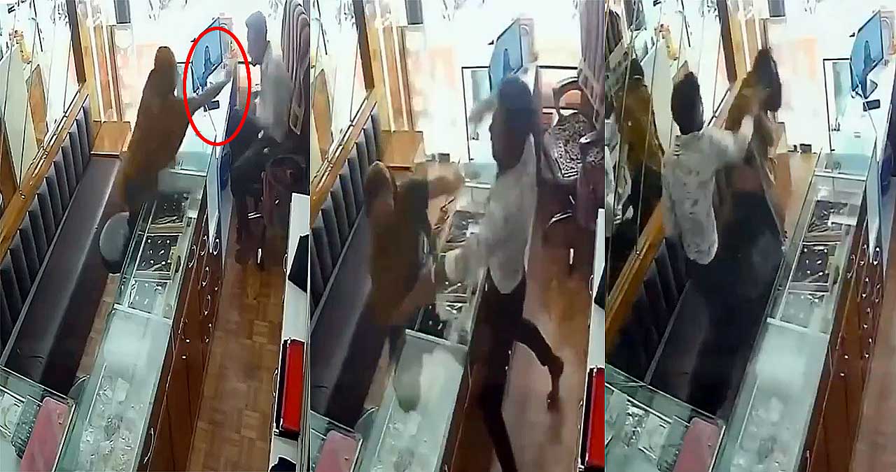కానీ ఆ పొడి ఆయన కళ్లలో పడలేదు. వెంటనే ఆ మహిళ దొంగతనం చేయాలనుకుంటోందని అర్థమైన యజమాని కోపంతో లేచి, ఆమెను చెంపదెబ్బలు కొట్టడం ప్రారంభించాడు. కేవలం 25 సెకండ్లలోనే దాదాపు 20 సార్లు కొట్టాడు. తర్వాత కౌంటర్పైకి ఎగబాకి ఆమెను బయటికి లాగి పడేసాడు. ఈ సంఘటన మొత్తం షాపులో ఉన్న సీసీటీవీ కెమెరాలో రికార్డ్ అయ్యింది.
