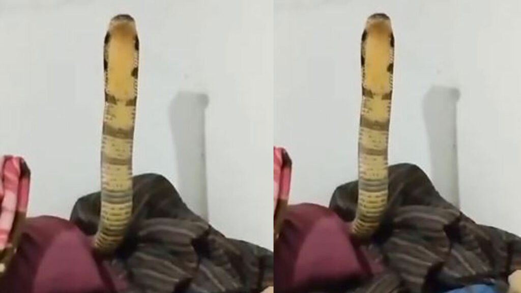 ఉత్తరాఖండ్లోని ఒక ఇంట్లోకి కింగ్ కోబ్రా (గిరి నాగు) నిశ్శబ్దంగా ప్రవేశించింది. ఆ భారీ విష సర్పం ఆ ఇంట్లో మంచంపై నిద్రిస్తున్న వ్యక్తి మీదుగా పాకి.. ఇంట్లోని వస్తువులు..బట్టలపై పాకుతూ ఇల్లు అంతా కలియ తిరిగింది. ఆ వీడియోలో కింగ్ కోబ్రా పడగ విప్పి తనపై పాకుతున్న సమయంలోనూ నిద్రిస్తున్న వ్యక్తి కళ్లు తెరిచి చూస్తూ కదలకుండా ఉండిపోగా.. అది మెల్లగా అతని మీద నుంచి గదిలోని ఇతర ప్రాంతంలోకి పాకుతూ వెళ్లింది.