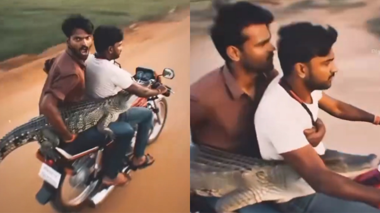 యువకులు బైక్ పై మొసలిని పట్టుకుని రైడ్ చేసి వీడియో వైరల్. నెటిజన్లు కామెంట్లు, వన్యప్రాణుల చట్టం పరిరక్షణపై సూచనలు చేస్తున్నారు.