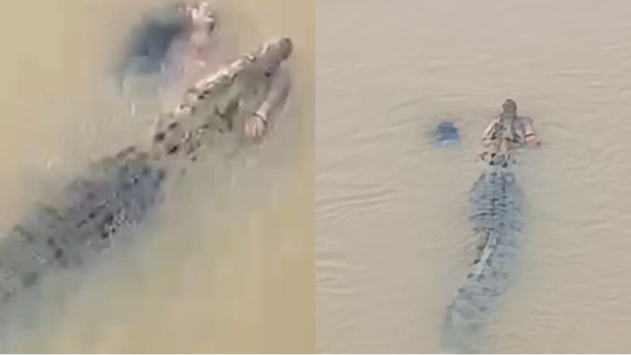A live video went viral from Jajpur, Bari area, where a crocodile dragging a waman in to the river, pubil getting panic after watching video #odisha #jajour #crocodile #news #viral #live pic.twitter.com/J1lR1k01D2