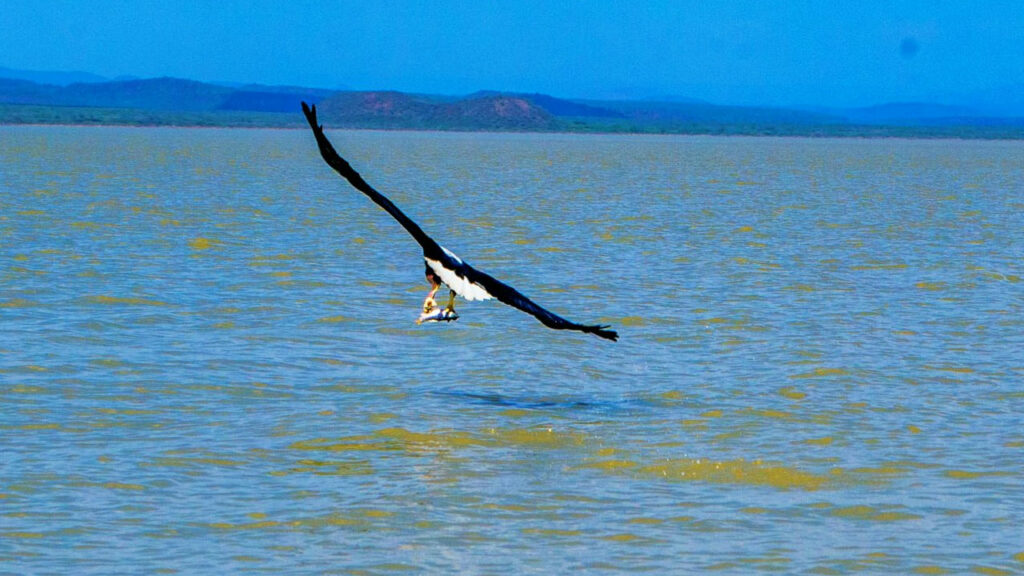 అలల మాటున విహరిస్తున్న చేపను ఆకాశం నుంచి గమనించిన గద్ద అదును చూసుకుని సర్రుమని అలల్లోకి వెళ్లి మరి వేటాడింది. చేపను పట్టుకునేందుకు అలల నీటిలో మునిగి చేపను తన కాలిగోర్లతో బంధించి రివ్వుమని మళ్లీ అకాశానికి ఎగిరిపోయింది. ఆ చేప బరువు ఇంచుమించు ఆ గద్ద బరువు ఉన్నప్పటికి అంత బరువున్న చేపను కాళ్లతో పట్టుకోని తడిసిన తన రెక్కలతో అతికష్టం మీద మళ్లీ ఆకాశయానం చేసిన ఆ గద్ద ఆహారం వేటలో తన నైపుణ్యంతో పాటు సాహసమే ప్రదర్శించింది.
