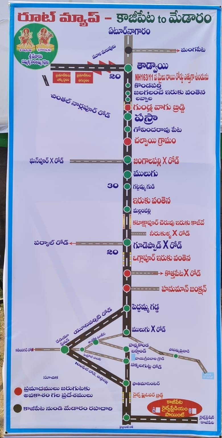 – ఖమ్మం, నల్లొండ, హైదరాబాద్, మెదక్, వరంగల్ ప్రాంతాల వారంతా ములుగు, పస్రా మీదుగా రావాలి.